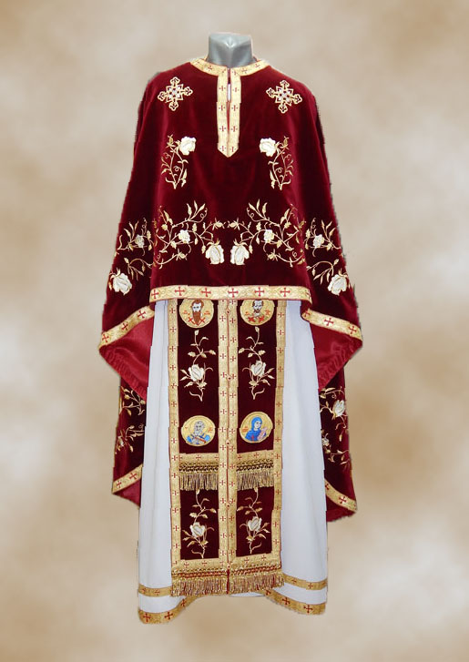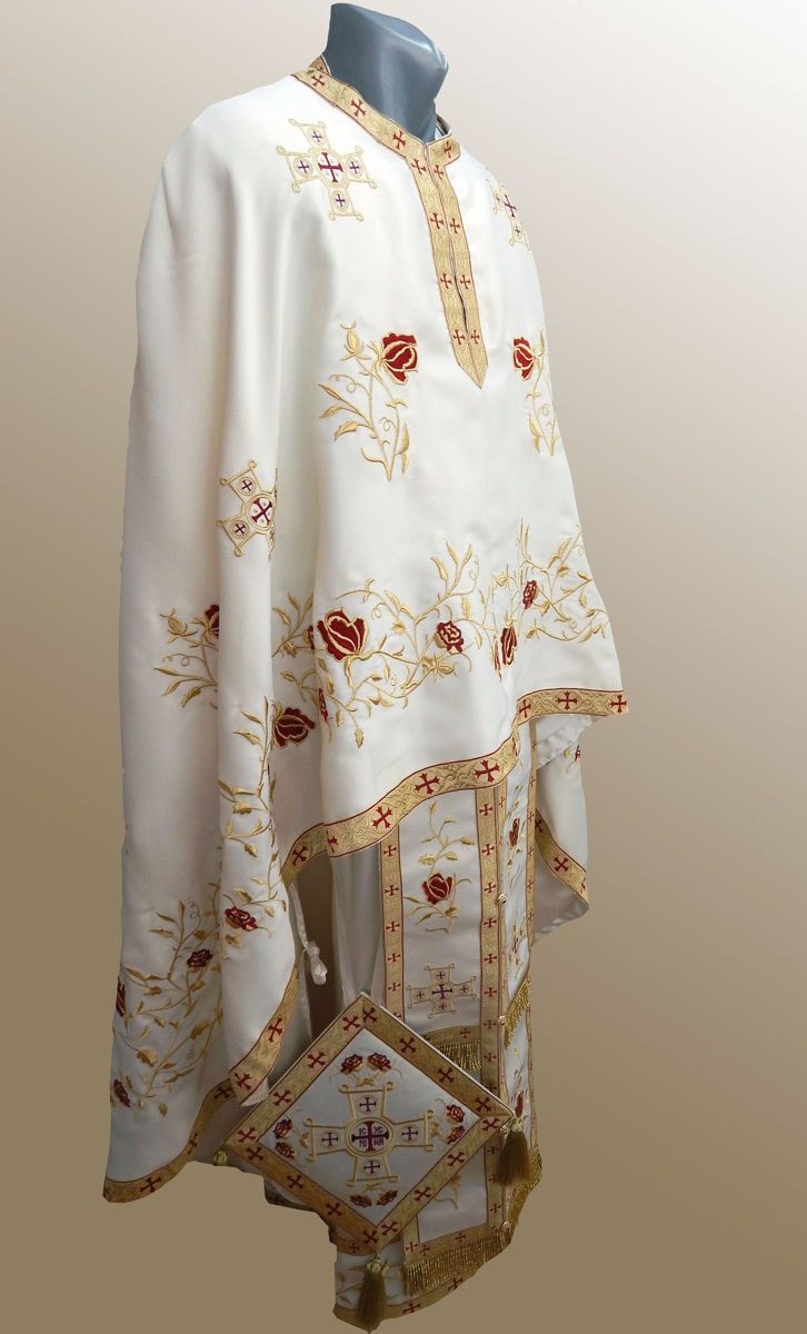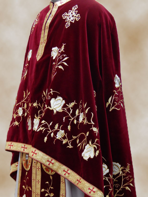 Vesmant cu broderie discreta de flori si ornament bizantin