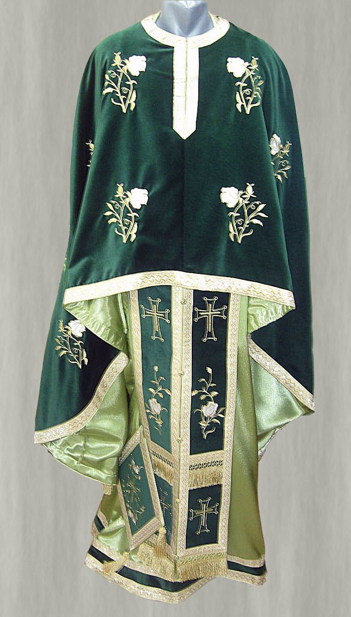 Vesmant cu broderie discreta de flori si ornament bizantin