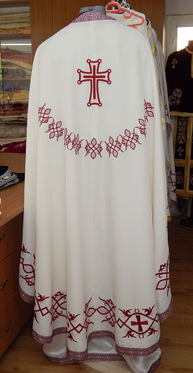 Vesmant preotesc brodat cu model ornamental bizantin.