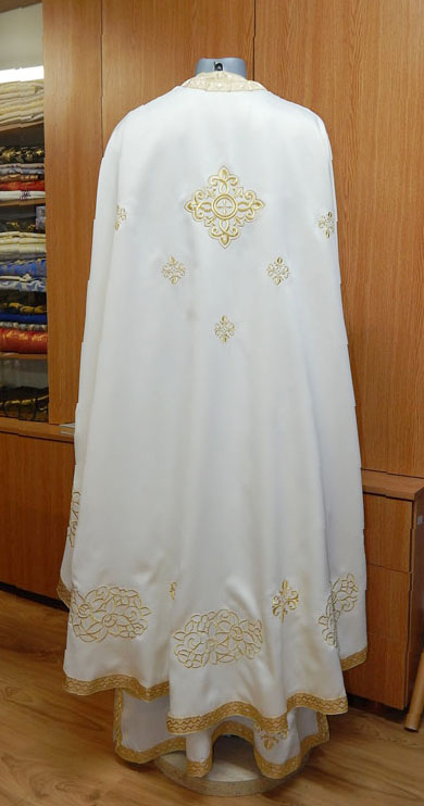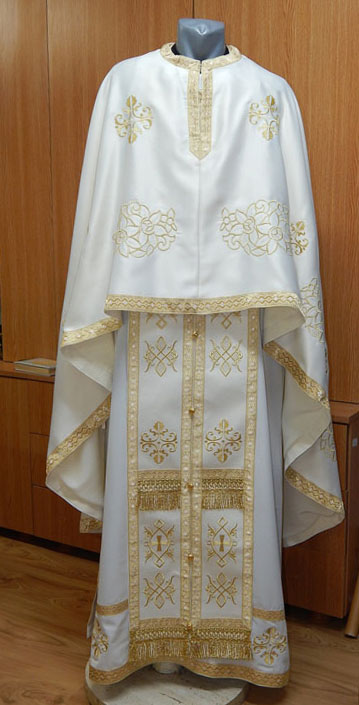 Vesmant cu broderie discreta de flori pe felon si ornamente bizantine pe epitrahil.