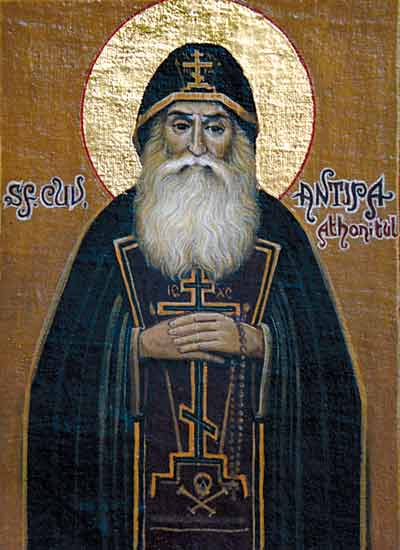 În Mineiul pe ianuarie, în 10 zile, tipărit la mănăstirea Sfântul Pantelimon din Muntele Athos, între sfinţii care se pomenesc atunci se află trecut şi Cuviosul Ieroschimonah Antipa Atonitul, cu viaţa sa pe scurt.
